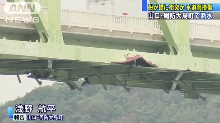 山口県周防大島町と大畠町とを結ぶ大島大橋がかかる大畠瀬戸で22日午前0時30分ごろ、ドイツの海運会社が所有する貨物船「エルナ・オルデンドルフ」(総重量2万5431㌧)が大島大橋の橋梁に衝突し、水道管と光ファイバーケーブルなどを切断する事故が発生した。切断された水道管は周防大島町への唯一の送水ルートであり、同町では同日午前8時ごろからほぼ全域の約9050世帯で断水し、約1万4600人の生活が麻痺している。海運関係者の間では前代未聞の事故であり、なぜこのような事故が起きたのか? と唖然とした表情で語られている。