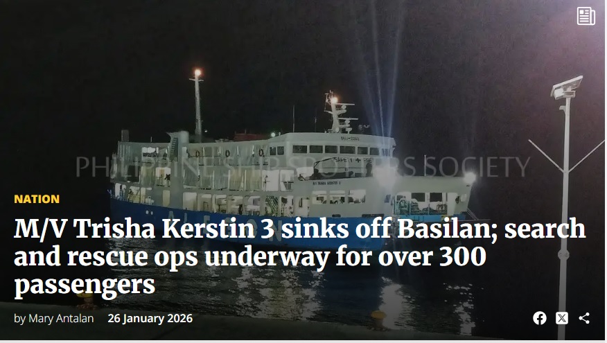 Search, rescue continues after M/V Trisha Kerstin 3 sinks off Basilan with 332 passengers