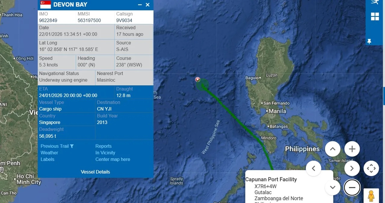 The Devon Bay was shown on 19 January as anchored at offshore position consistent with loading at nickel ore ports in southern Philippines with limited infrastructure.