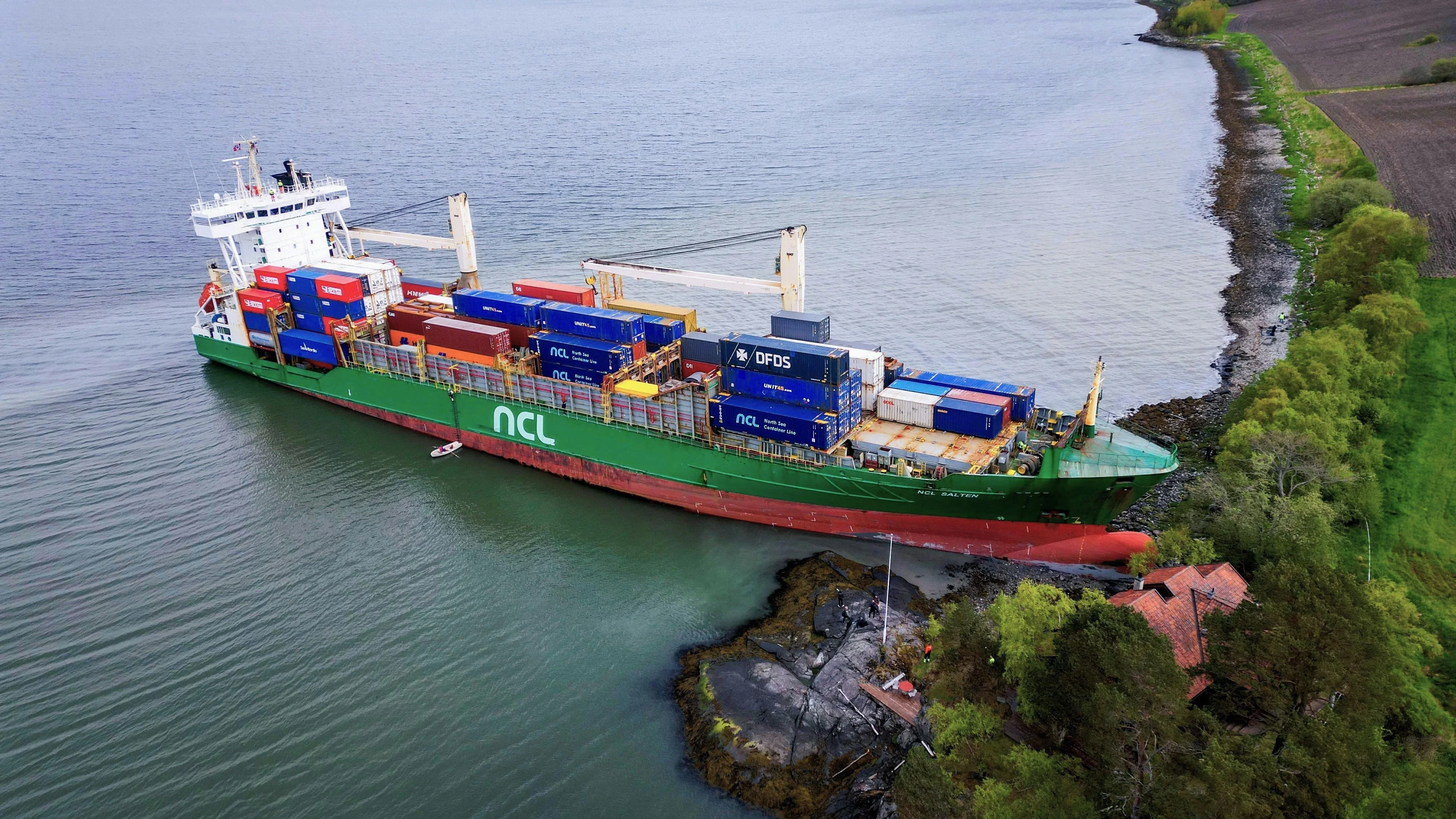海運会社が、暗礁から船を引き上げる業者を手配している。流出しているのは粘度の低い重油という。