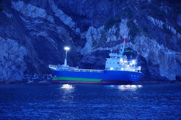 伊良部島白鳥崎沖合で座礁し放置されたモンゴル船籍タンカー「TJ88」
