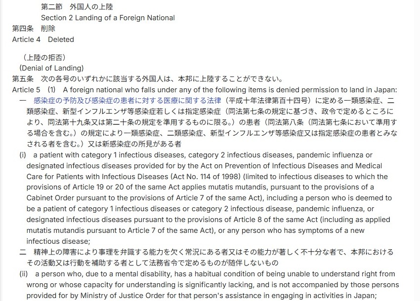 出入国管理及び難民認定法 (Japanese Law Translation)