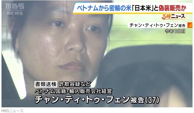 発表では、2人はベトナムに住む仲間と共謀。3~9月、ベトナムから密輸したコメ約8トンを国産米と偽り、愛知、兵庫両県などの4業者に販売して代金計約498万円を詐取した疑い。いずれも容疑を認め、被告は「日本で米価が上がり、ベトナムで安く仕入れて売れば利益が出ると思った」と供述しているという。