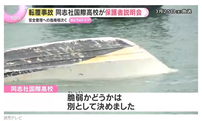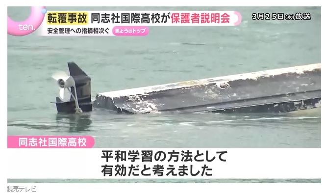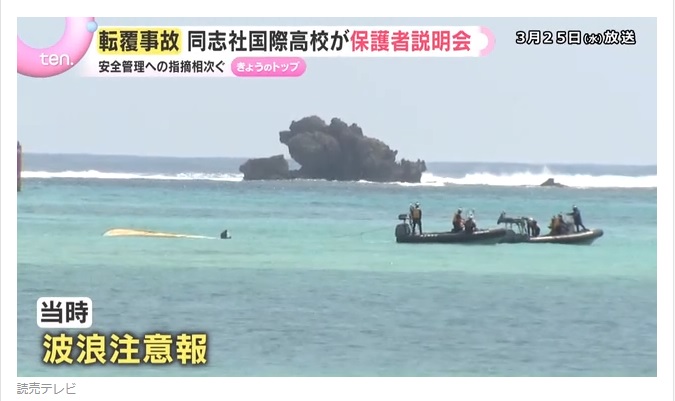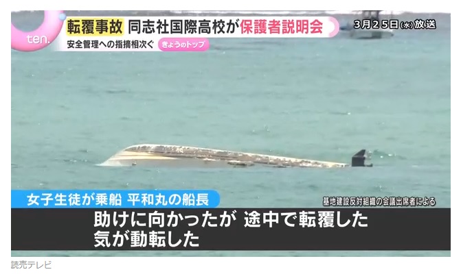 沖縄県名護市の辺野古沖で船2隻が転覆し、同志社国際高(京都府京田辺市)の女子生徒ら2人が死亡した。痛ましい事件であり、まずはご冥福をお祈りしたい。