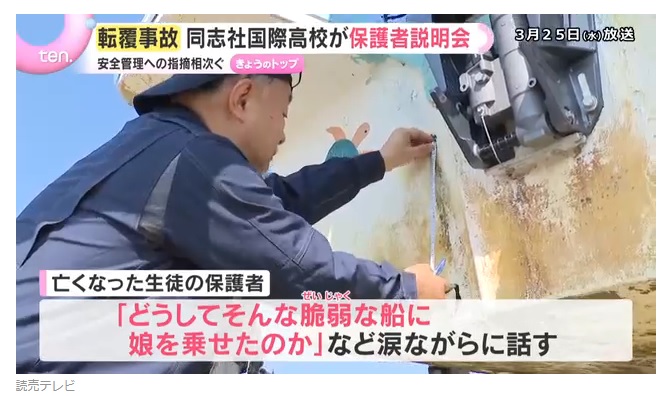 早く学校、船側双方がしっかり責任の所在を明らかにして償わないとならないでしょう。