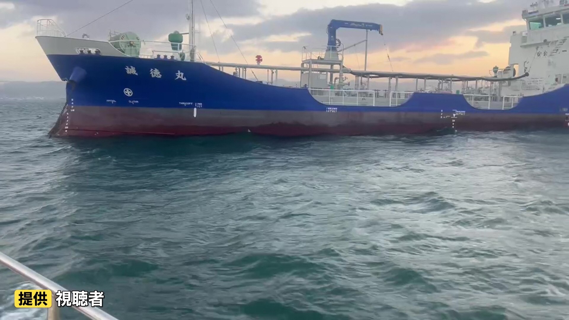 乗組員にケガはありませんでしたが、タンカーに積まれていた石油から精製された液体が流出したということで、海上保安部が事故の原因を調べています。